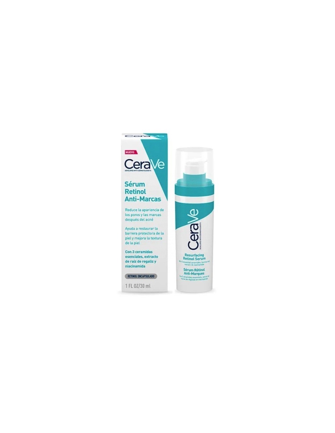 Desarrollado con dermatólogos, CeraVe Sérum Retinol Anti-marcas contiene una fórmula suave pero eficaz - con tres ceramidas esenciales, niacinamida calmante, retinol encapsulado y extracto de raíz de regaliz - ayuda a suavizar la textura de la piel reduciendo la apariencia de las marcas post imperfecciones, minimizando el aspecto de los poros y mejorando la superficie de su piel. Este sérum rejuvenecedor para manchas, ligero y de rápida absorción, ayuda a restaurar el tono uniforme de la piel y a promover una tez sana.