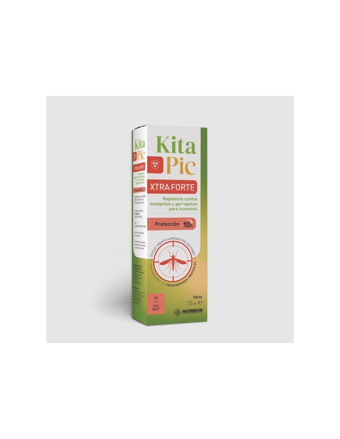 Kitapic xtra forte es un repelente de mosquitos y garrapatas de uso humano formulado con deet 50% recomendado para aquellos que buscan máxima protección en situaciones extremas como en viajes a zonas con riesgo de trasmisión de enfermedadesEficaz frente a mosquitos y garrapatas vectores de enfermedades tropicalesHasta 10 horas contra picaduras de mosquito comunes y el mosquito trasmisor de la malaria, 9 horas contra las picaduras de mosquitos transmisores de la fiebre amarilla y 5 horas contra las picaduras de las garrapatas.