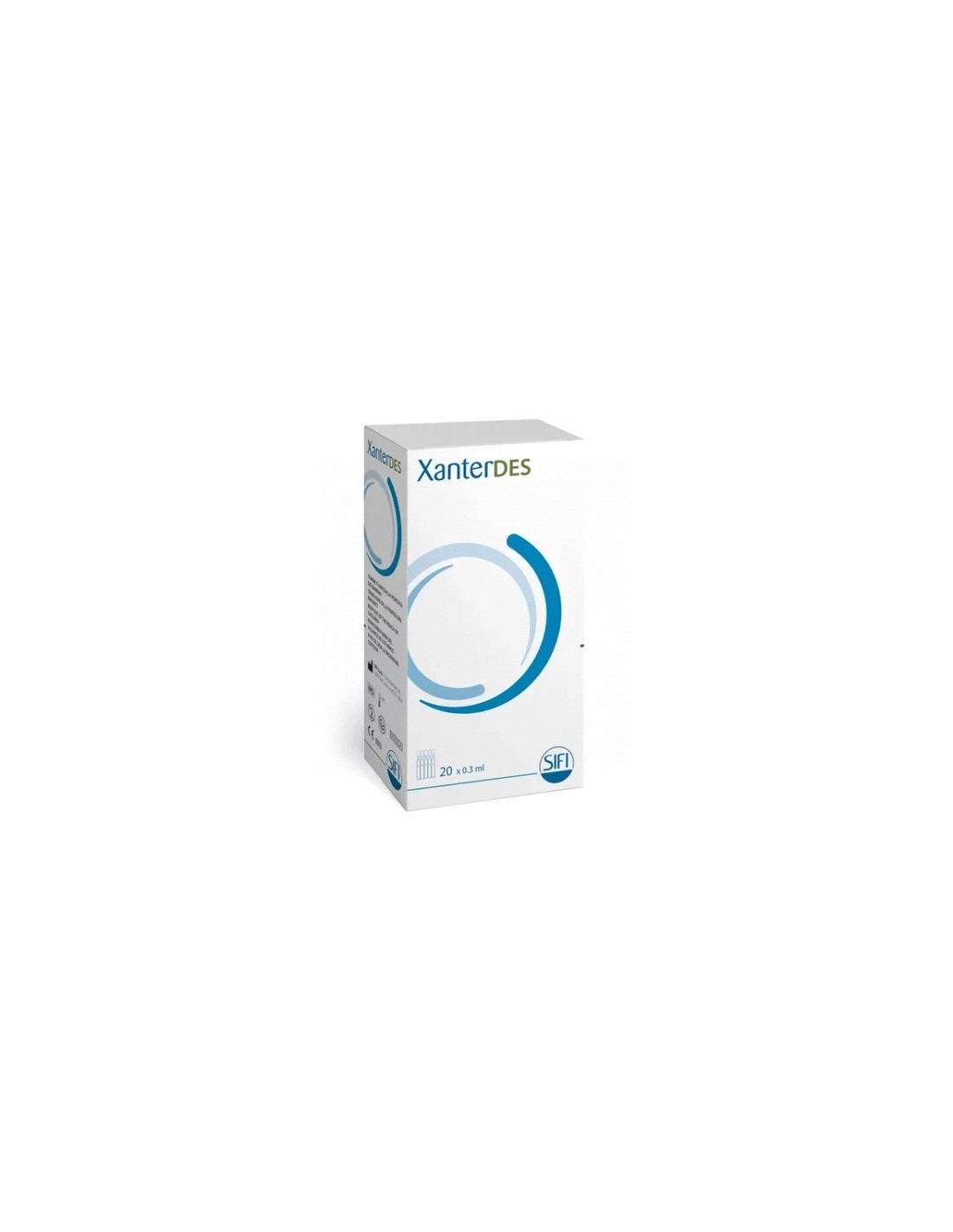 Xanterdes es un colirio o solución oftálmica en monodosis que se utiliza para aliviar la irritación ocular, el picor, la rojez y la sequedad, y para favorecer la reepitelización de la superficie ocular, especialmente tras traumatismos. Su fórmula contiene goma xantana, que hidrata y protege la córnea, y desonida fosfonato de sodio, un corticosteroide que reduce la inflamació