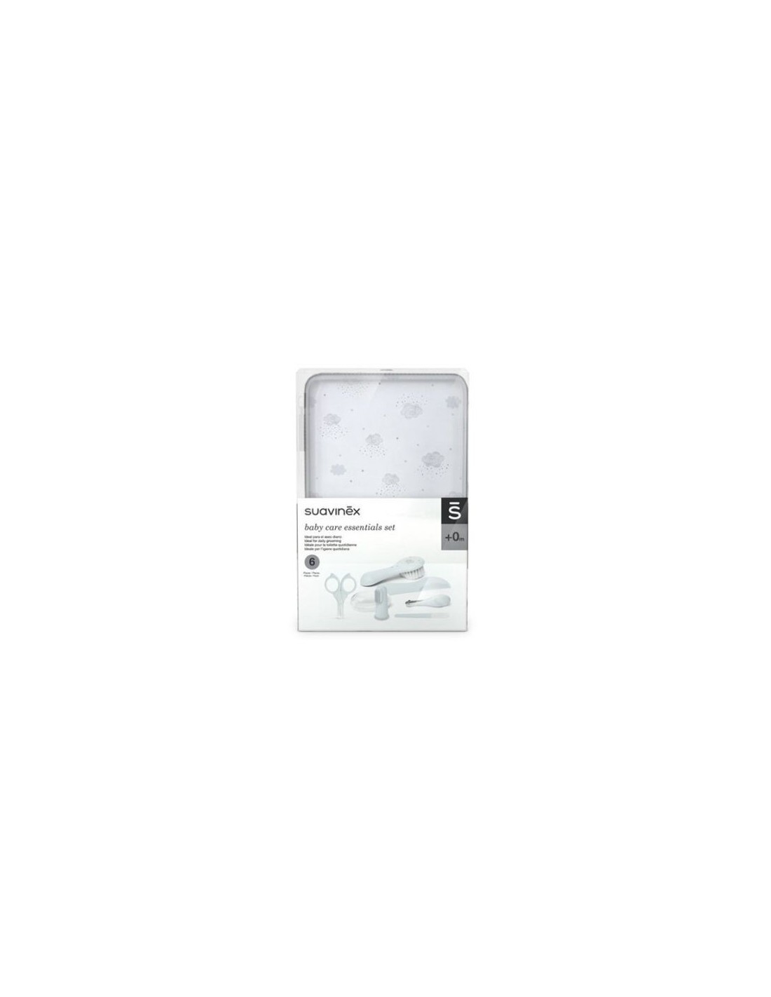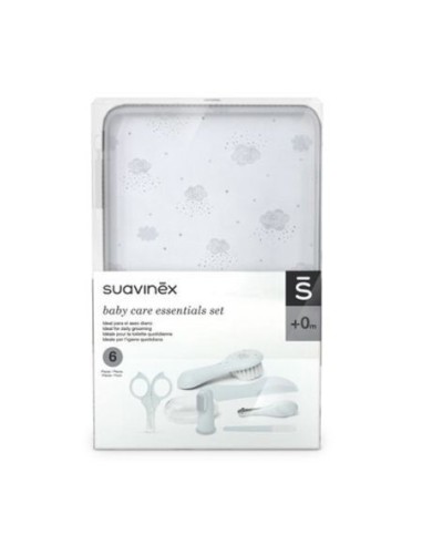 SUAVINEXSet de manicura de suavinex con 8 productos esenciales, ¡todo lo necesario para la hora del baño! neceser rígido e impermeable, con cierre de cremallera. Muy práctico para transportar todos los accesorios para el aseo del bebé bien ordenados este pack incluye: neceser manicura con 6 productos para el cuidado del bebé. Termómetro de bañera. Esponja para recién nacido. Incluye: cepillo-peine: cepillo de fibras pobladas y muy suaves. Cepillo dental: cepillo de dedal de silicona. Pensado para introducir el dedo y limpiar suavemente las encías y primeros dientes del bebé. Tijeritas: de reducido tamaño y punta redondeada. Lima: específica para uñas finas y frágiles. Cortauñas: diseño ergonómico para manejar con precisión con una sola mano. Termómetro de bañera: sin mercurio. Esponja canastilla: de tamaño pequeño para los primeros días de vida.