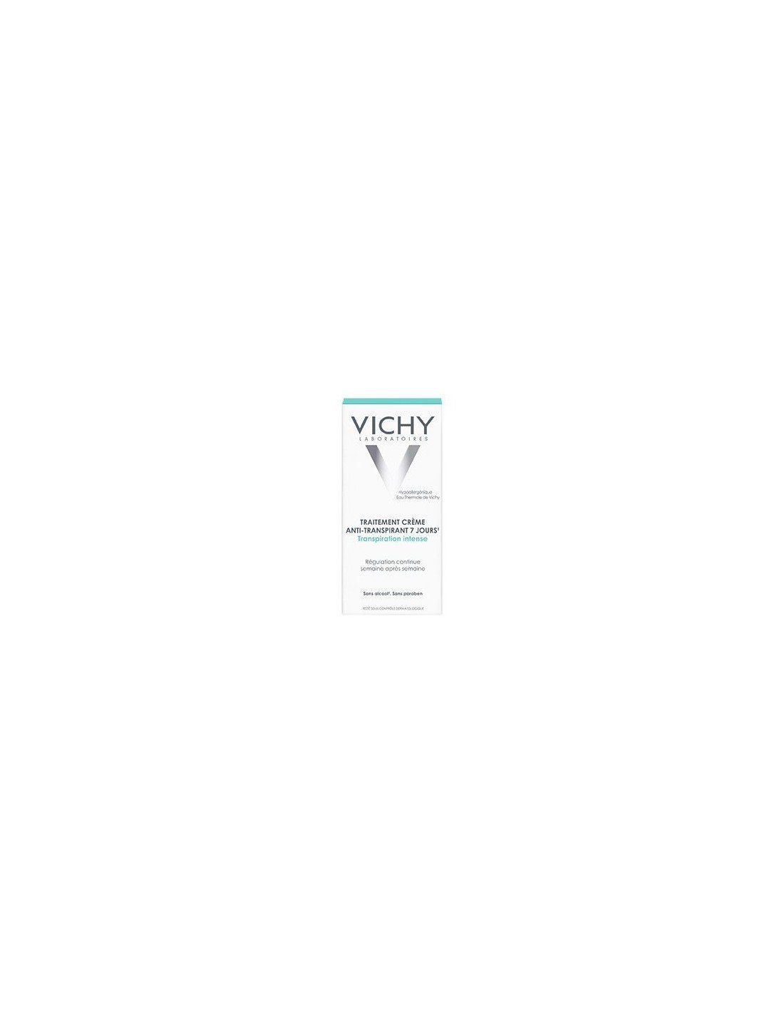 Vichy Tratamiento Antitranspirante es una crema para combatir la transpiración intensa. Sus activos anti-transpirantes en micro-partículas actúan directamente en los poros sudoríparos durante 7 días.